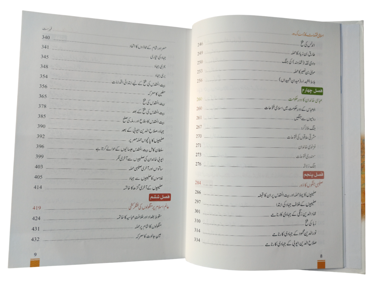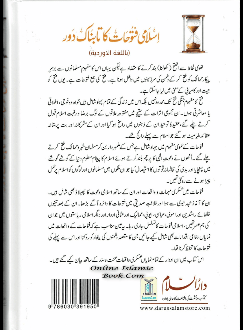 فتوحات میں عسکری مہمات و واقعات اور ان کے ساتھ اسلامی دعوت کا پھیلاؤ بھی شامل ہیں۔ ان کا آغاز عہد نبوی ﷺ سے ہوا اور خلافت صدیقی میں فتوحات کا دائرہ آگے بڑھا۔ ان کے بعد تینوں خلفائے راشدین اور اموی، عباسی ، ایوبی، ممالیک اور عثمانی ادوار اور دیگر اسلامی ریاستوں میں جوان کی ہم عصر تھیں، اسلامی فتوحات کا تسلسل جاری رہا۔ یہ عین مناسب ہے کہ فتوحات کے واقعات میں نمایاں دفاعی اقدامات بھی شامل کیے جائیں جن کا مقصد دشمنوں کی یلغار کو روکنا اور اس سے پہلے کی فتوحات کا تحفظ کرنا تھا۔ اس کتاب میں ان ادوار کے تمام نمایاں عسکری واقعات صحت وسند کے ساتھ بیان کیے گئے ہیں۔