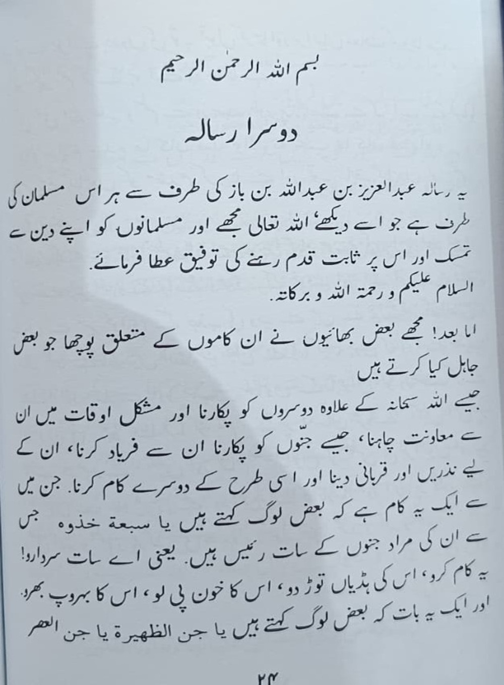 تاہم یہ خوشگوار امر ہے کہ علمائے حق نے ہمیشہ شرک و بدعات کے خلاف جہاد کیا اور کتاب و سنت کی روشنی میں دین حق کی توضیح تصریح فرمائی۔ انہی علمائے حق میں سے سیخ عبدالعزیز بن عبداللہ بن باز کا نام بھی ایک اہم حیثیت کا حامل ہے۔ انہوں نے عقیدہ توحید اور شرک و بدعت کے درمیان حد فاصل قائم کرتے ہوئے کتاب الله اور سنت رسول اللہ کی روشنی میں دین ھدی کی تشریح و ترجمانی کی اور اس سلسلے میں انہوں نے تین رسالوں پر مشتمل مجموعه اقامة البراهين عربی زبان میں تحریر فرمایا۔