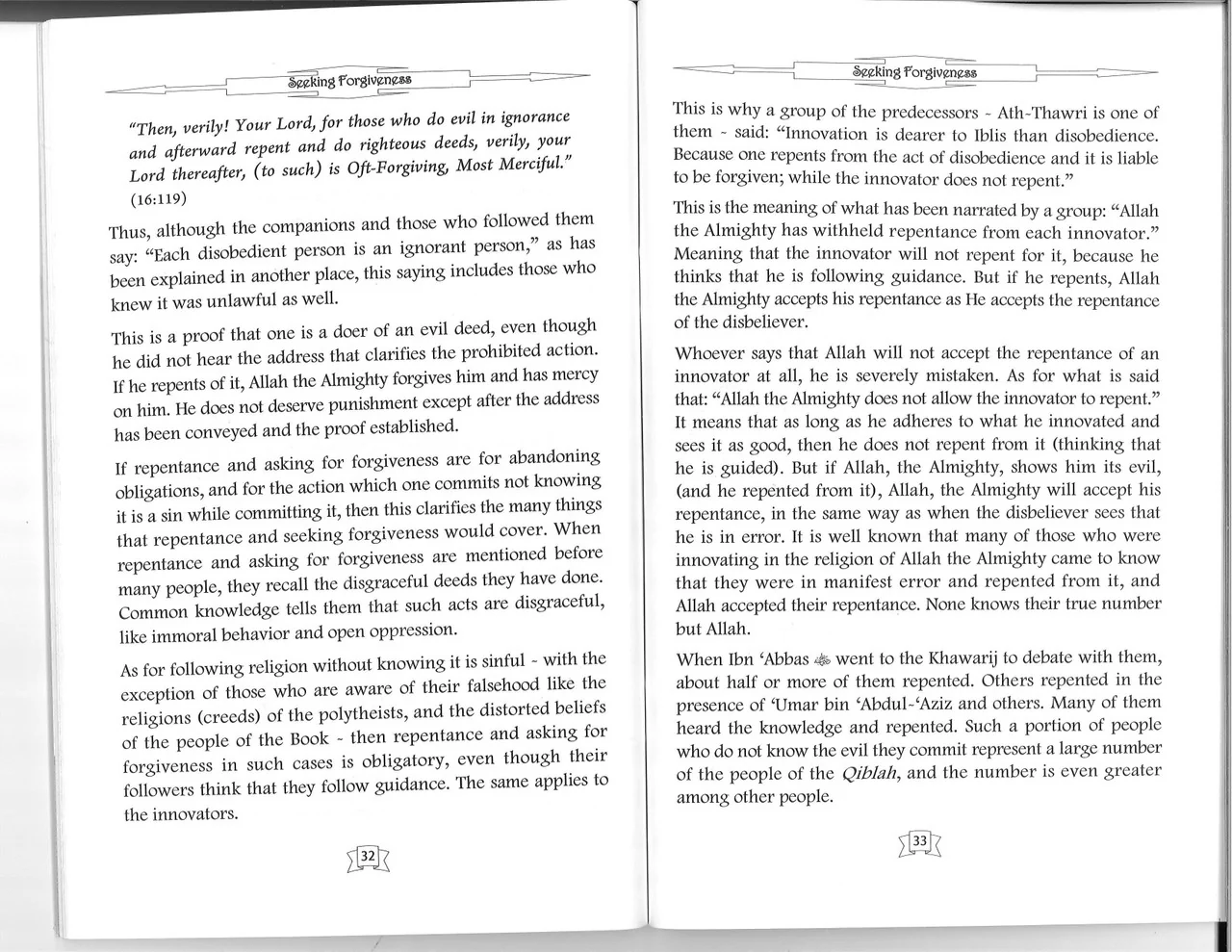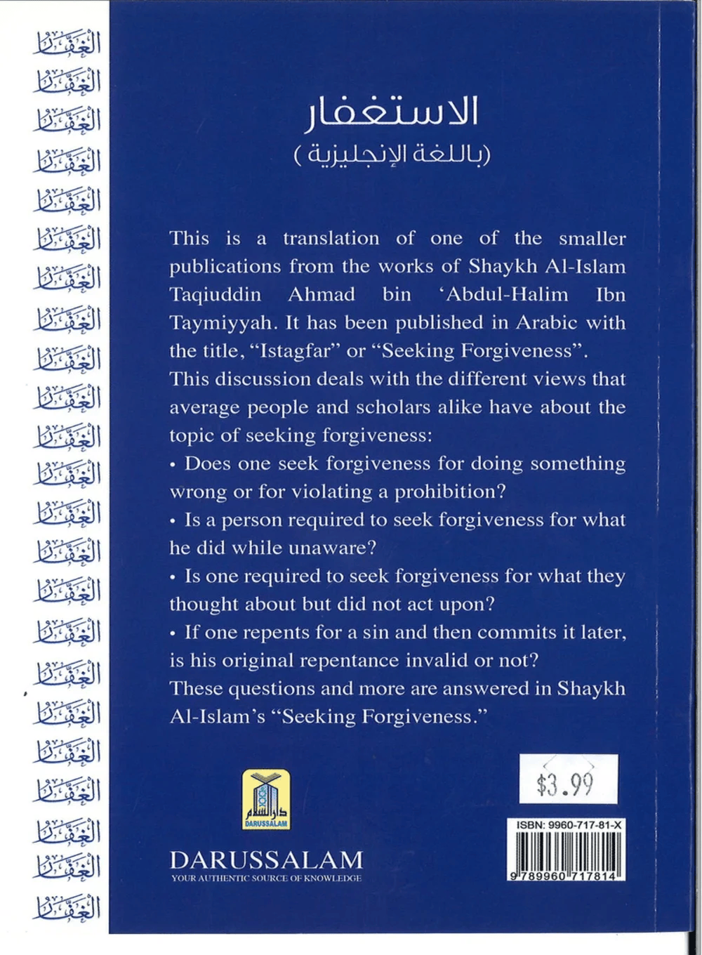 This is a translation of one of the smaller publications from the works of Shaykh Al-Islam Taqiuddin Ahmad bin ‘Abdul-Halim Ibn Taymiyyah. It has been published in Arabic with the title, “Istagfar” or “Seeking Forgiveness”.